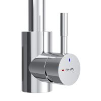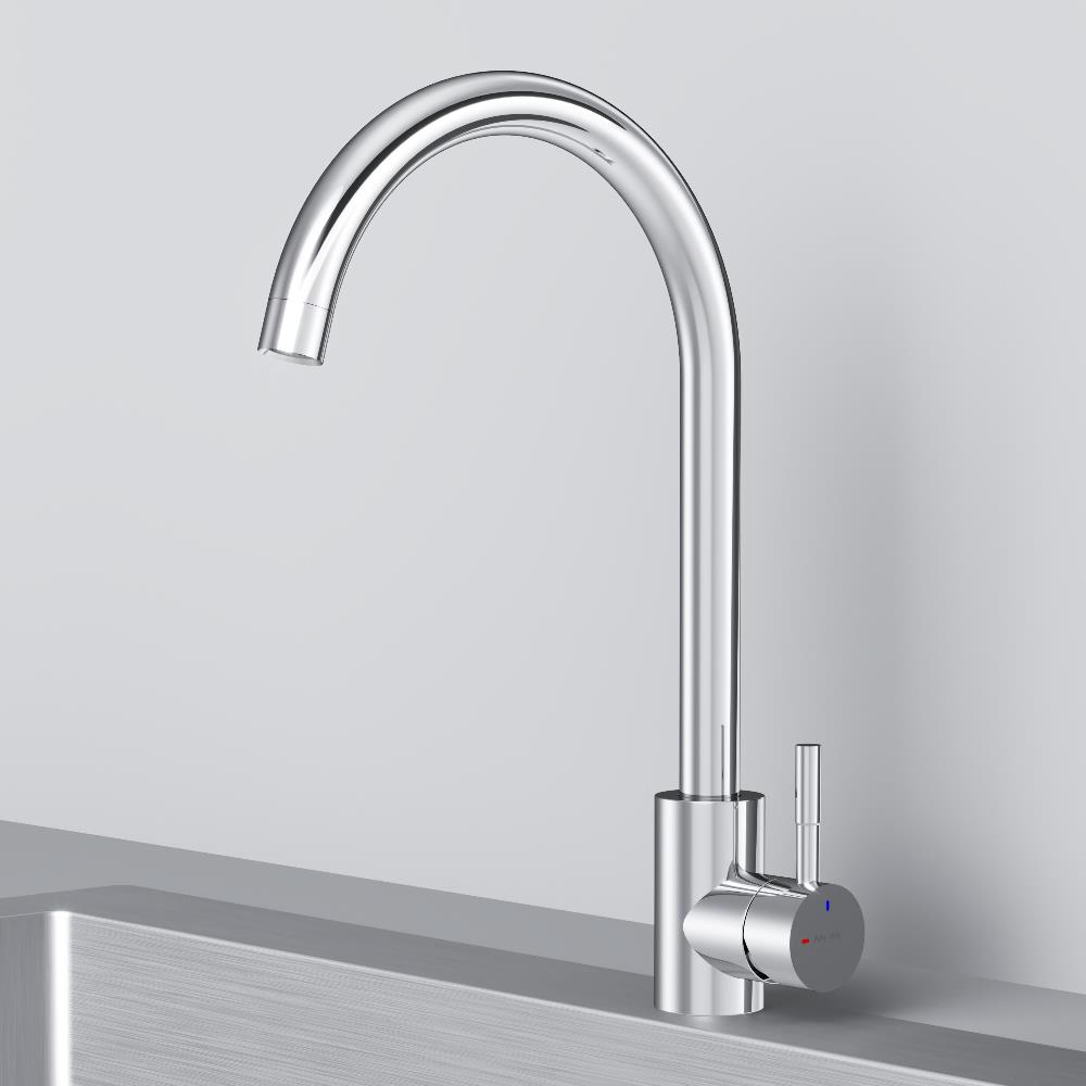 Встречайте пополнение экстраординарной коллекции X-Joy S – кухонные смесители с инновационной функцией экономии воды. Лаконичный облик продуктов принадлежит авторству ведущих дизайнеров AM.PM в Германии. Смеситель с функцией EcoStart —стильное и экологичное решение для вашего дома. При включении смесителя в центральном положении автоматически потечет холодная вода. Для включения горячей воды – необходимо повернуть ручку влево. Поворот ручки вправо заблокирован. Оптимизация диапазона действия ручки смесителя сокращает нерациональный расход воды до 40% в месяц. EcoStart сочетает удобство использования с экономией ресурсов заботясь о вашем бюджете и об окружающей среде. Эксклюзивное покрытие Everlast – вдвое превышает отраслевые стандарты по прочности и износостойкости. Ювелирный блеск и прочность покрытия достигаются по стандарту Chrome plating standard NSS 80H. Высокий излив смесителя идеально подойдет для раковины любого размера и значительно упрощает такие задачи как наполнение больших емкостей. ""
