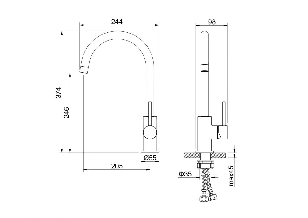 AQ1382BGM ЕВРОПА смеситель для кухни, оружейная сталь