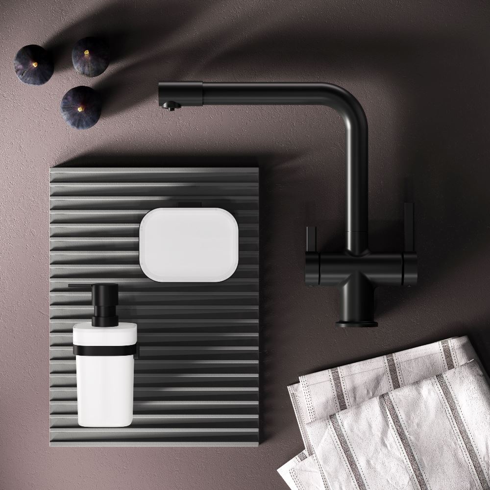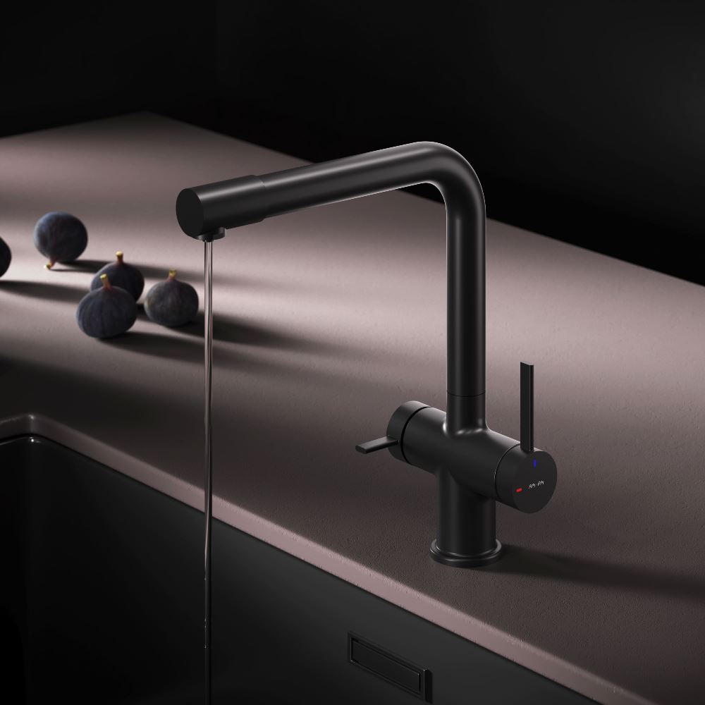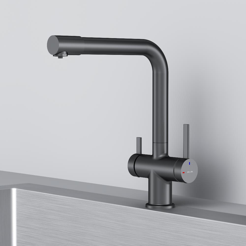 F8F05722 Func, смеситель для кухни с L-изливом с каналом для питьевой воды, черный