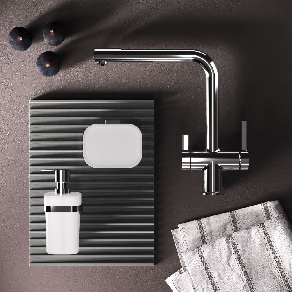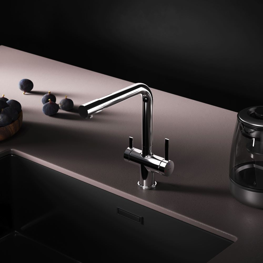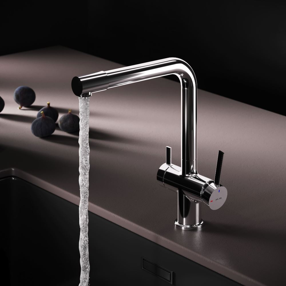 F8F05700 Func, смеситель для кухни с L-изливом с каналом для питьевой воды, хром