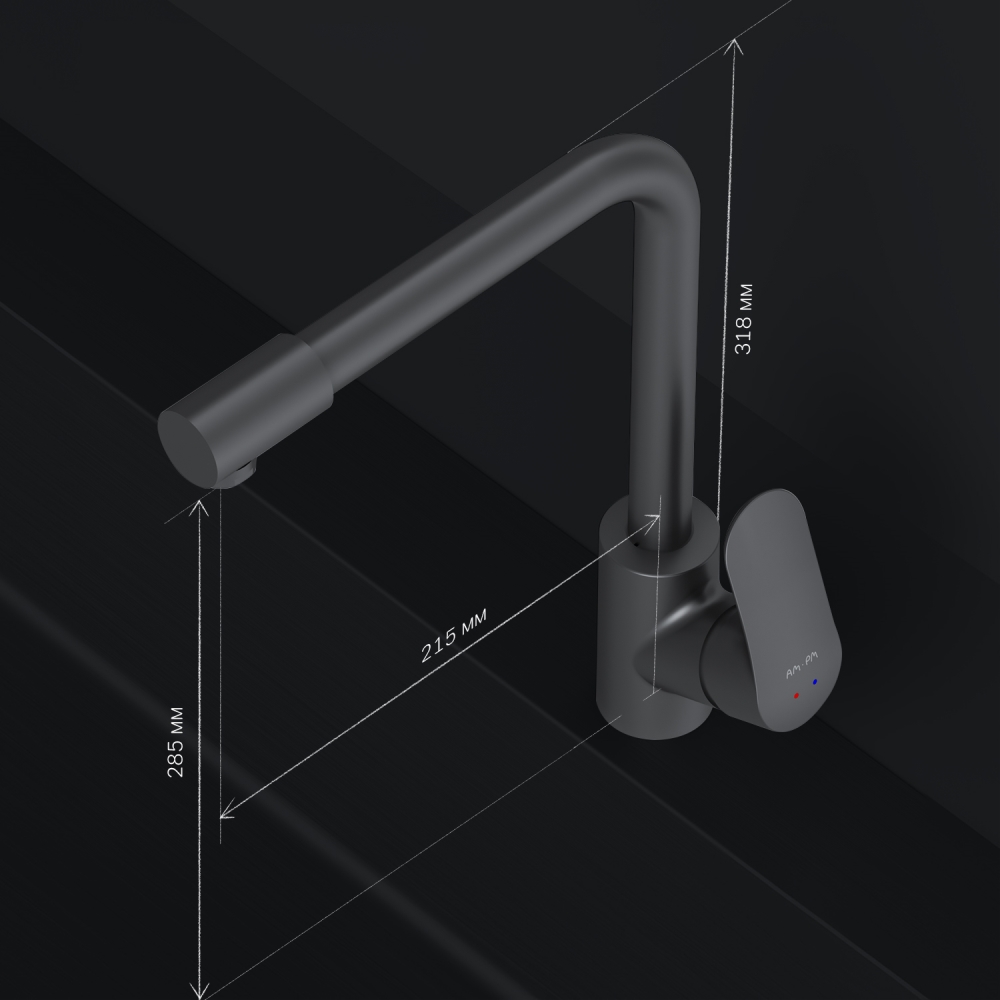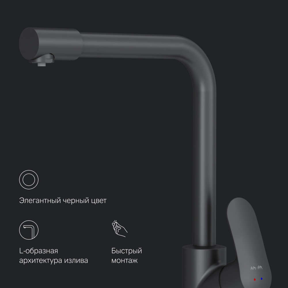 Смеситель для кухни с каналом для питьевой воды, L-излив, черный AM.PM Like F8005722, черный