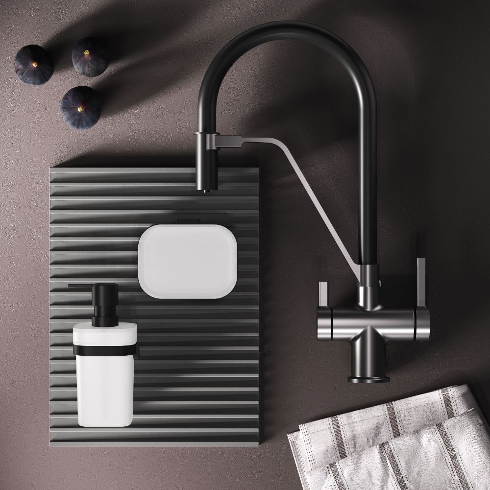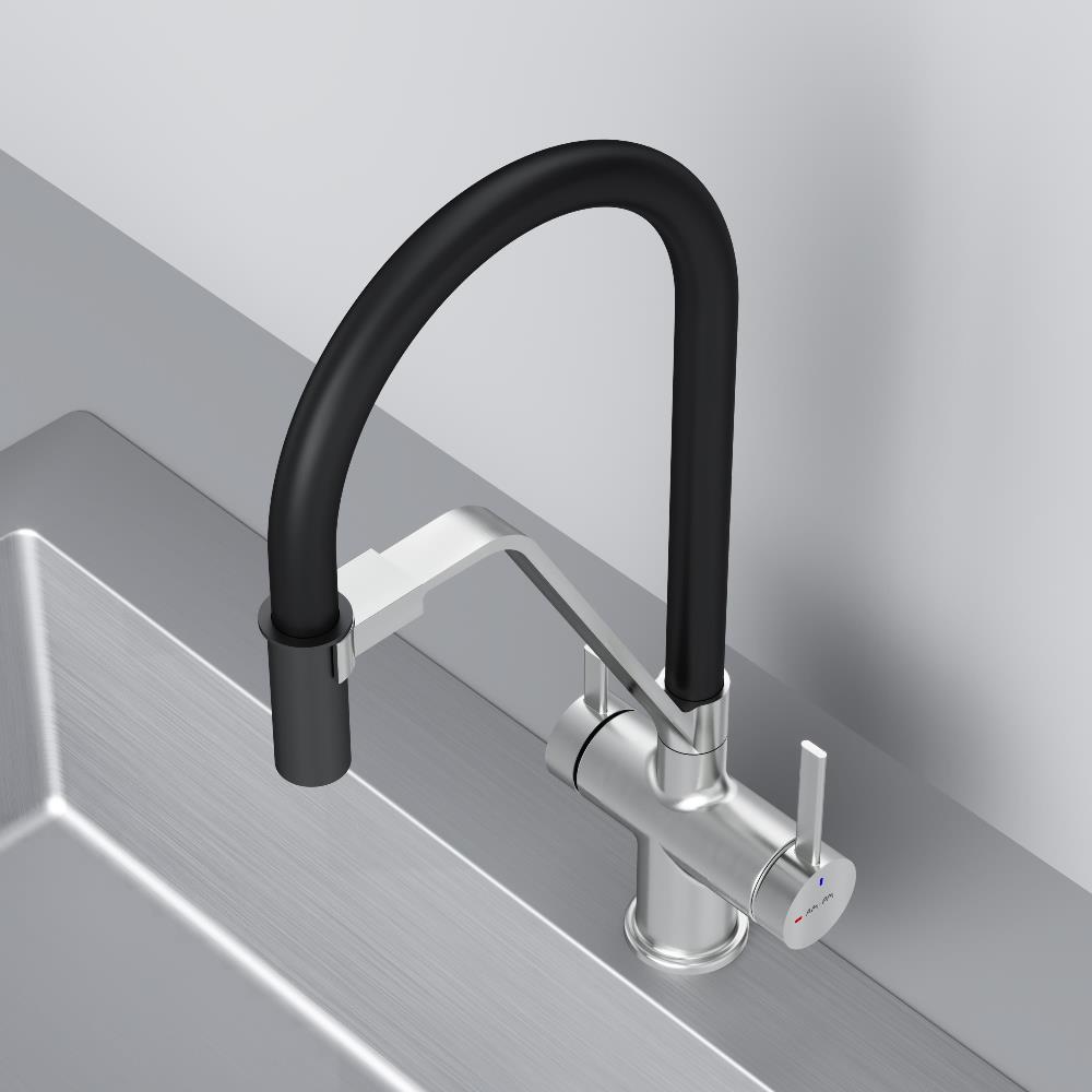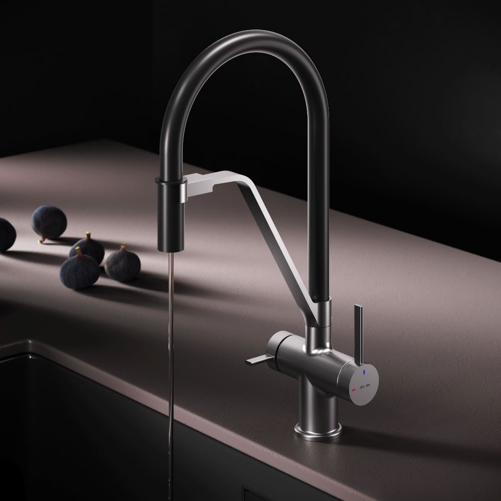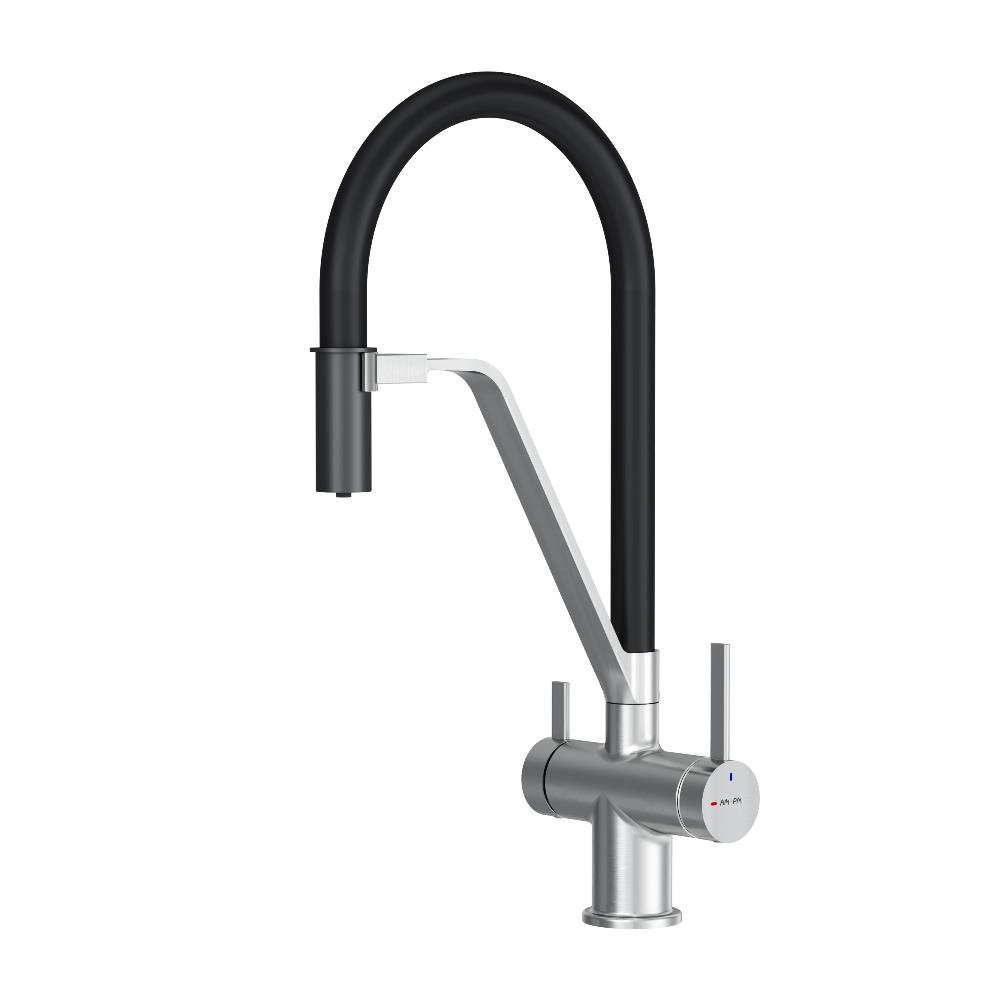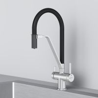 F8F07812 Func, смеситель для кухни с каналом для питьевой воды и гибким изливом, сатин,черн. излив