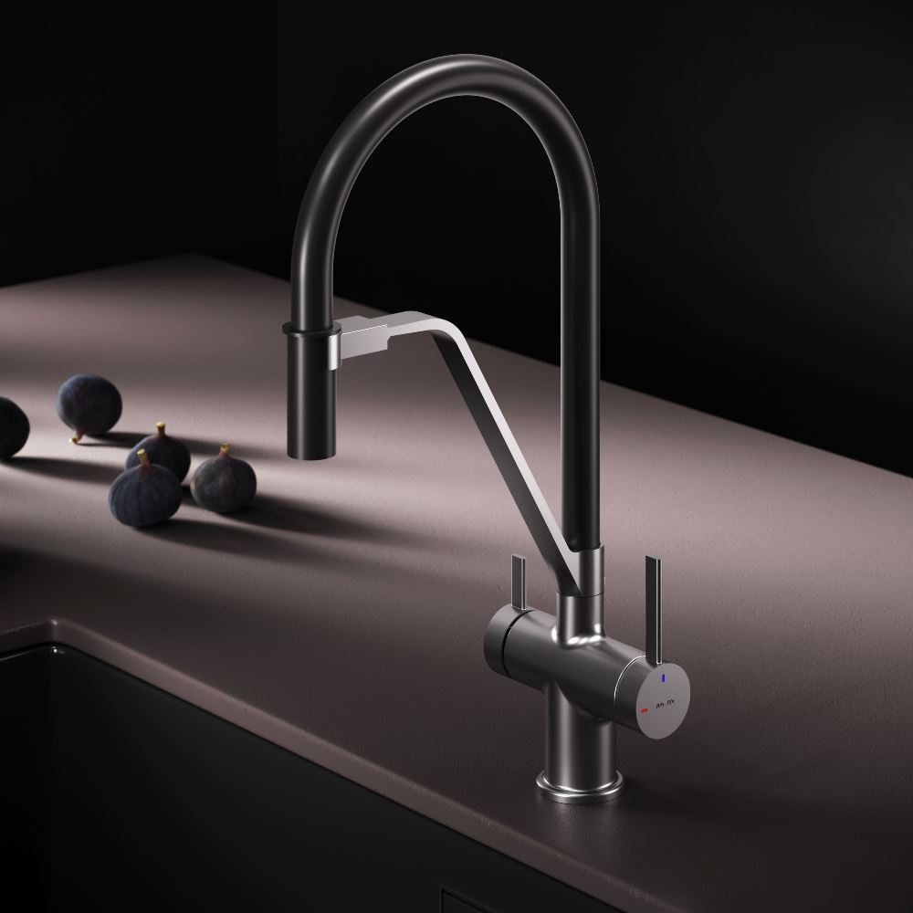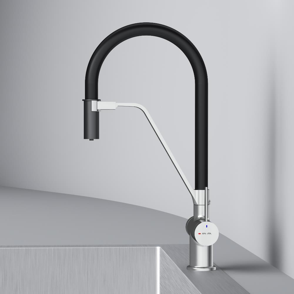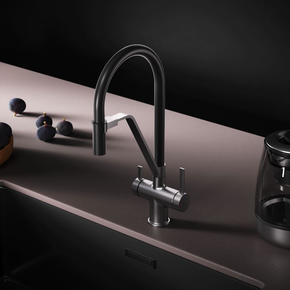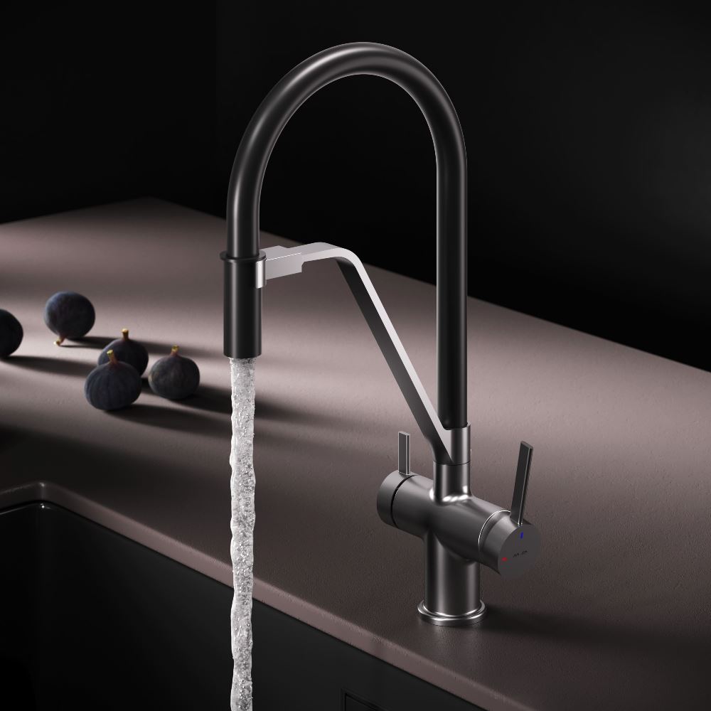 F8F07812 Func, смеситель для кухни с каналом для питьевой воды и гибким изливом, сатин,черн. излив