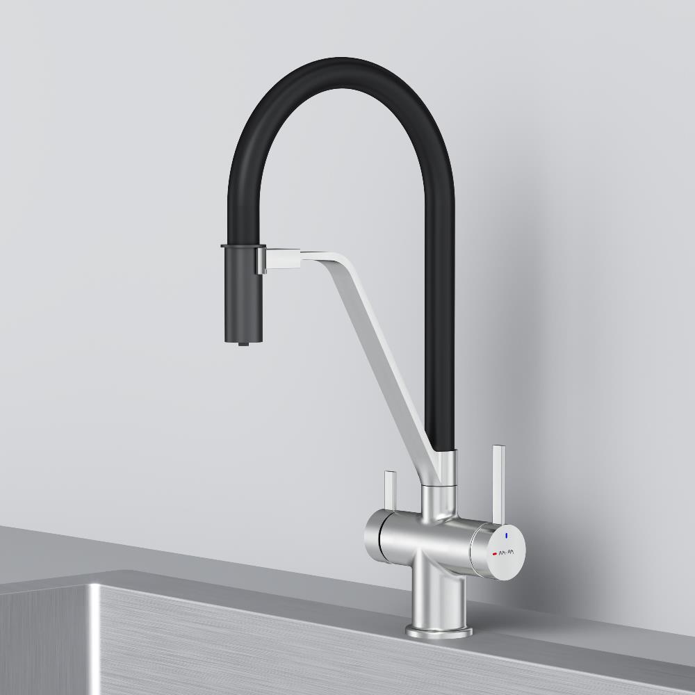Смеситель для кухни с каналом для питьевой воды, гибкий излив AM.PM Func, чёрный/сатин F8F07812