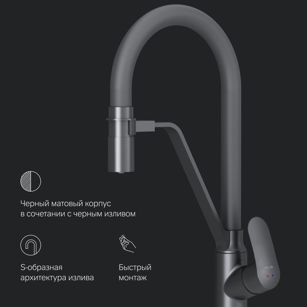 Смеситель для кухни с каналом для питьевой воды и гибким изливом AM.PM Like F8007822, черный