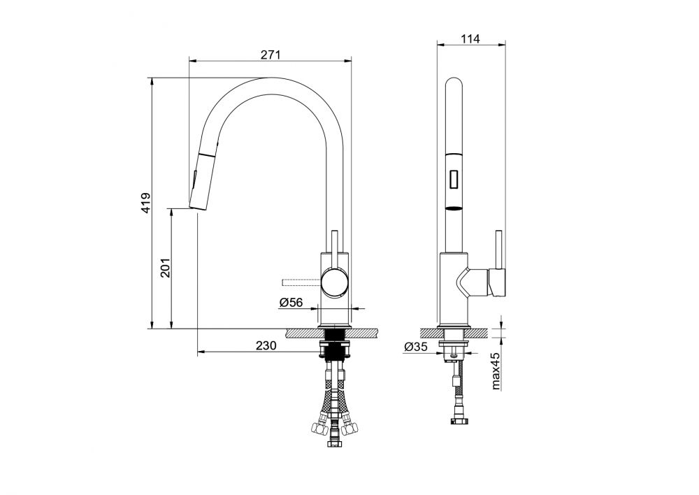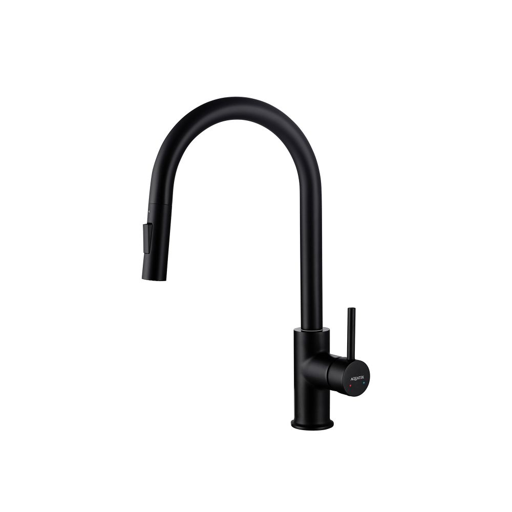 Смеситель для кухни с вытяжным изливом 2 jet AQUATEK, матовый черный AQ1384MB ЕВРОПА