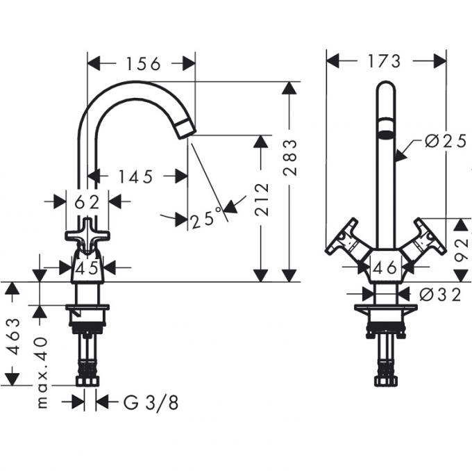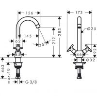 Смеситель для кухонной мойки Hansgrohe Logis M32 220, двухвентильный, хром 71285000