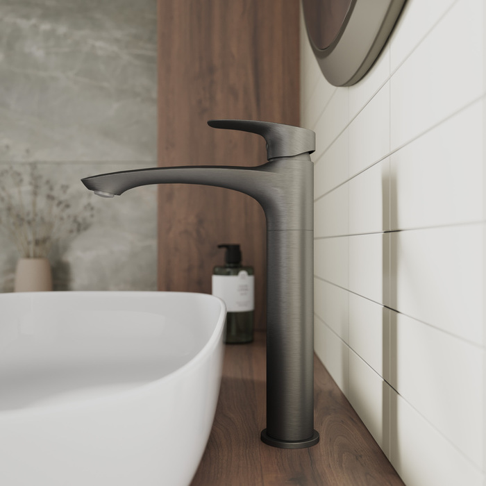 Смеситель для умывальника Rora отличается универсальным характером: основной акцент в его дизайне приходится на плавные линии корпуса и трендовый цвет. Модель в графитовом цвете одинаково выигрышно смотрится на контрастных белоснежных раковинах и дополняет собой керамику темных оттенков. Высокий смеситель (290 мм) подходит для установки с накладными раковинами-чашами. В комплекте гибкая подводка и крепеж. • Качественный механизм смешивания воды смесителя Milardo® рассчитан на более чем 70 000 циклов работы – это не менее 15 лет эксплуатации семьей из трех человек. • PVD-покрытие смесителя нанесено методом вакуумного напыления, при котором частички краски проникают глубоко в структуру металла. Подобная технология обеспечивает высокую стойкость цвета при негативном воздействии внешних факторов. • Встроенный аэратор легко извлекается из корпуса смесителя с помощью обычной монетки, что значительно упрощает его очистку. • Гарантия на смеситель Milardo® – 7 лет, на картридж – 3 года. (с) Авторский текст, март 2025 г.