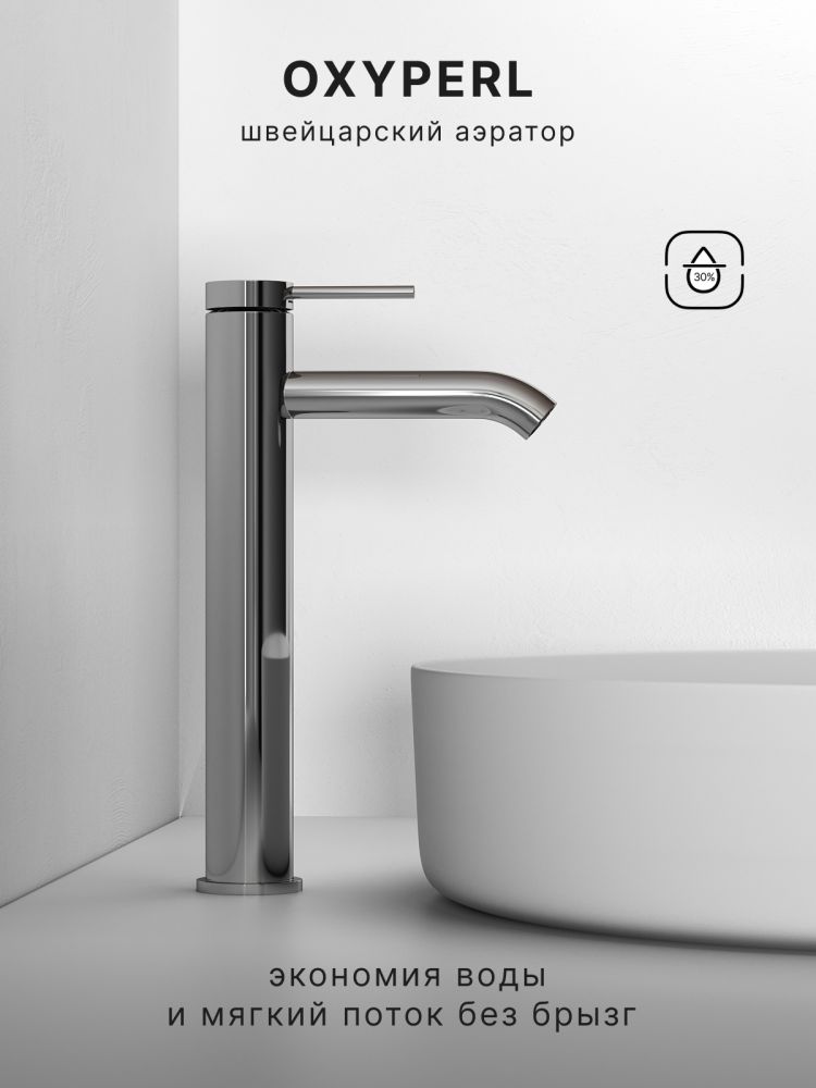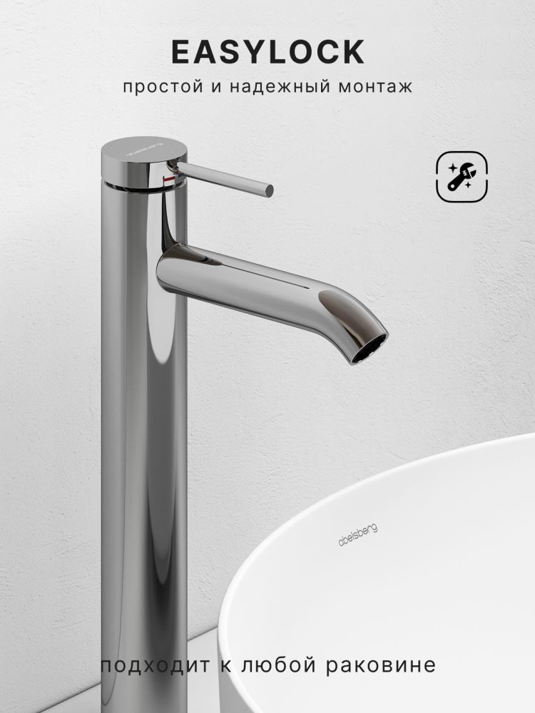 Смеситель для раковины Abelsberg Fluida ERF22003CH высокий, глянцевый хром