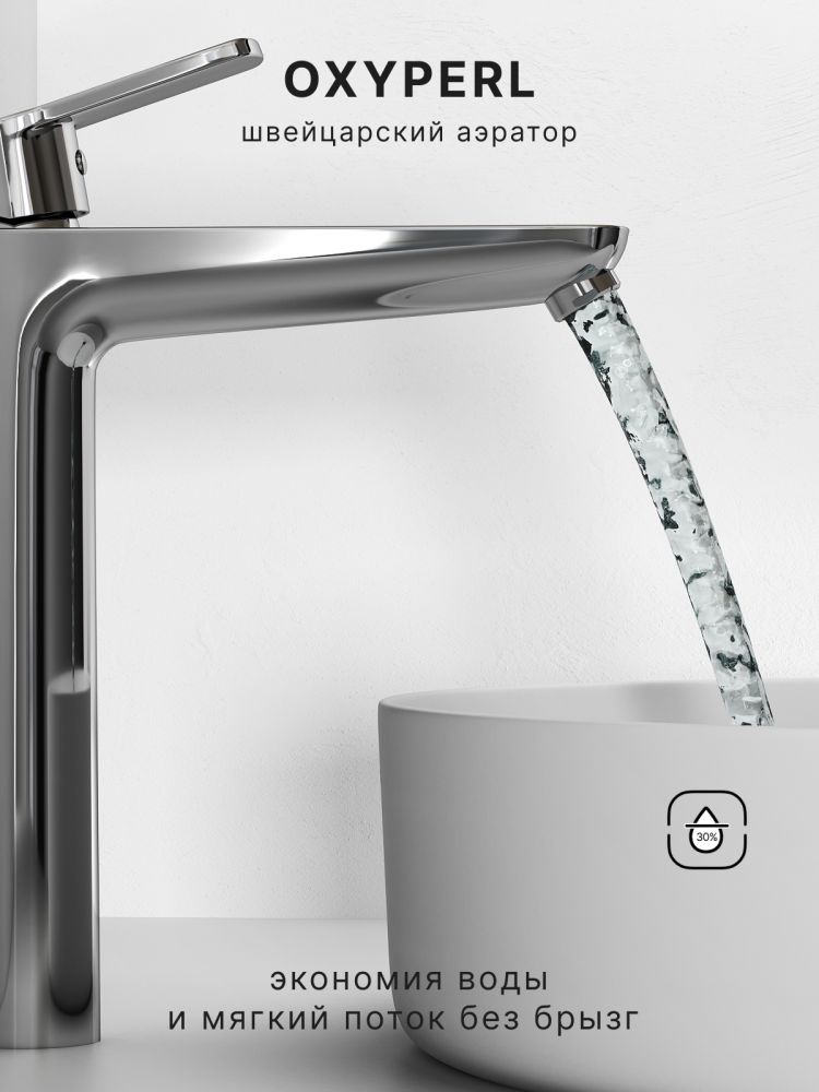 Смеситель для раковины Abelsberg Lineara UNF23509CH высокий, глянцевый хром