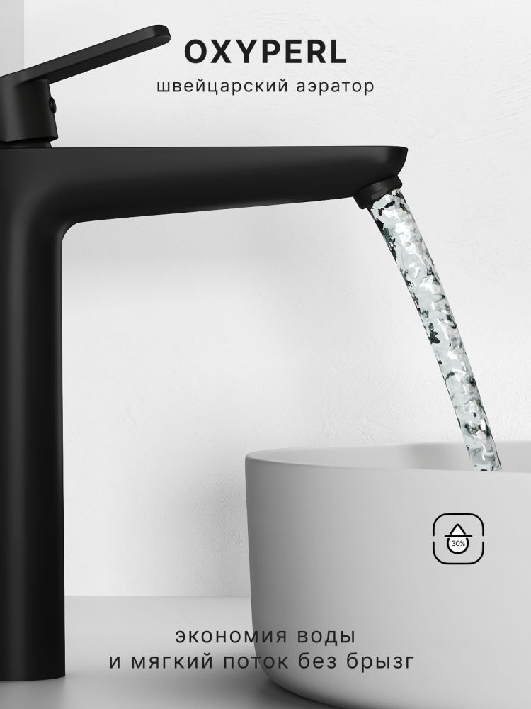 Смеситель для раковины Abelsberg Lineara UNF23509MB высокий, вулканический черный