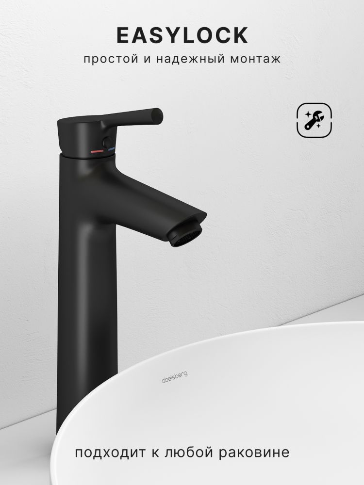 Смеситель для раковины Abelsberg Solida AMF20091MB высокий, вулканический черный