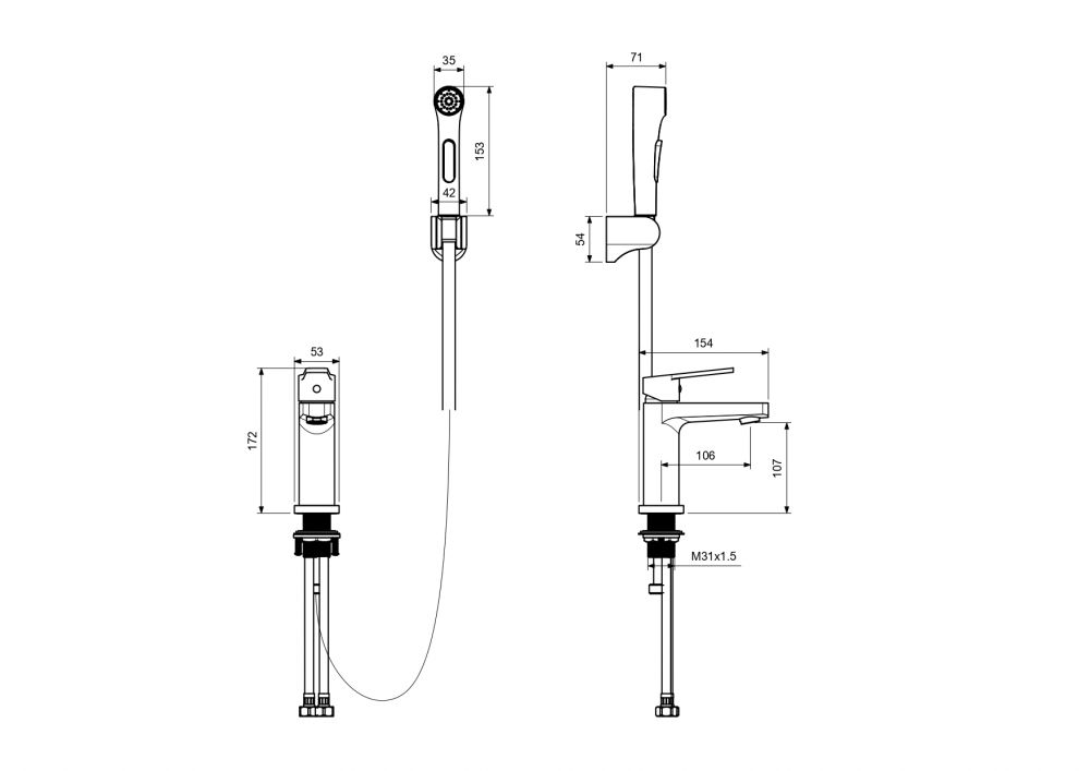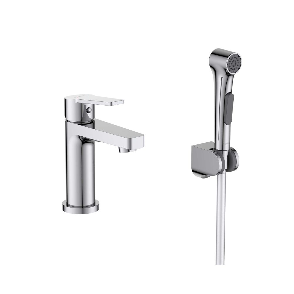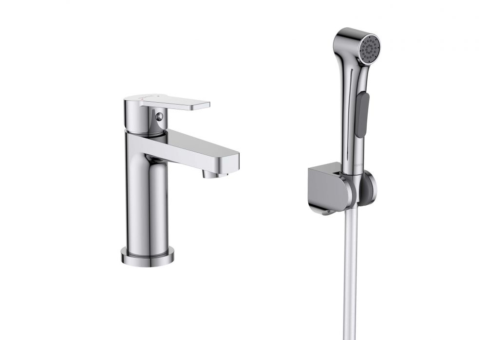 AQ1712CR ЛУГАНО смеситель для раковины 106 с гигиеническим ручным душем