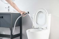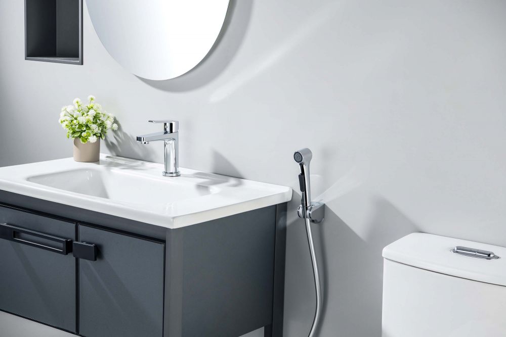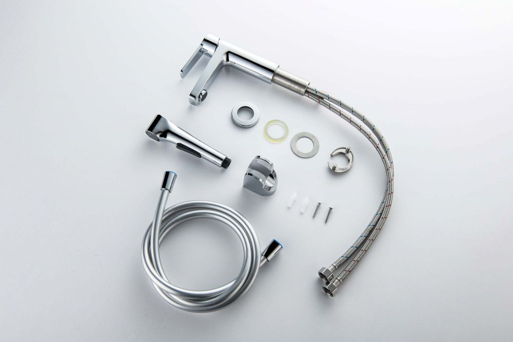 Смеситель из латуни Ручка из цинкового сплава Керамический картридж Wanhai Экономичный аэратор Гибкая подводка 600 мм из нерж. Ручной гигиенический душ из пластика Кронштейн из пластика Душевой шланг из ПВХ 1,5 м Упакован в коробку со вставкой из вспененного ПВХ