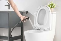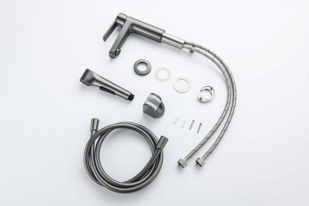 Смеситель из латуни Ручка из цинкового сплава Керамический картридж Wanhai Экономичный аэратор Гибкая подводка 600 мм из нерж. Ручной гигиенический душ из пластика Кронштейн из пластика Душевой шланг из ПВХ 1,5 м Упакован в коробку со вставкой из вспененного ПВХ