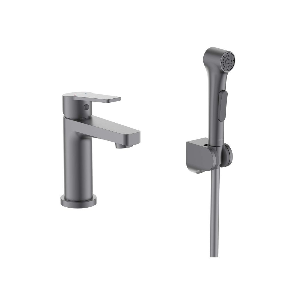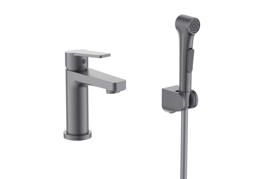 AQ1712BGM ЛУГАНО смеситель для раковины 106 с гигиеническим ручным душем, оружейная сталь