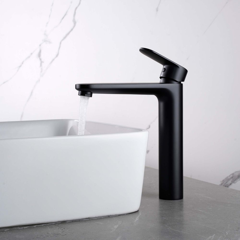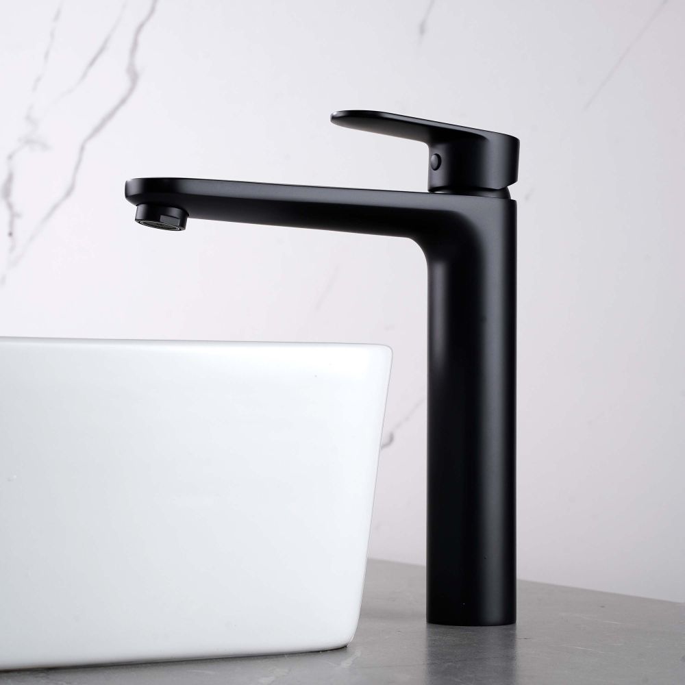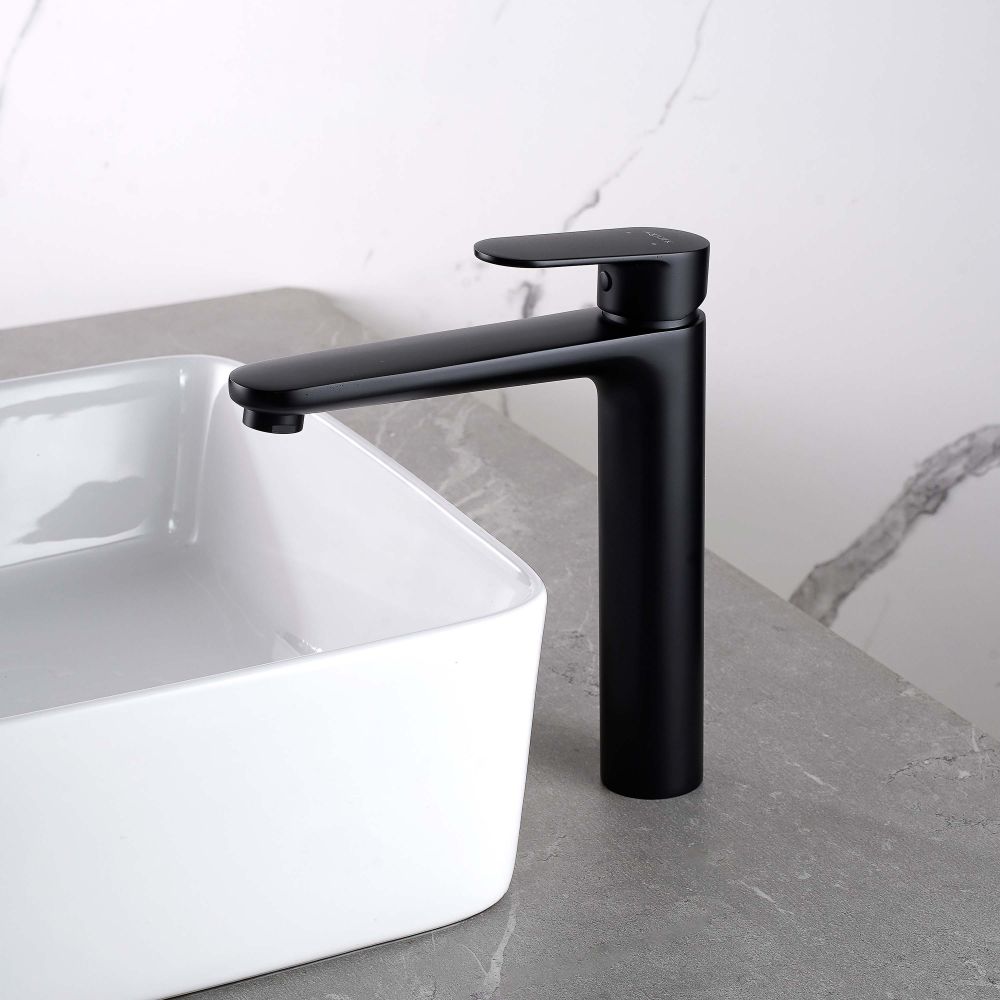 AQ1804MB НИКА смеситель для раковины высокий 190 без донного клапана, матовый черный