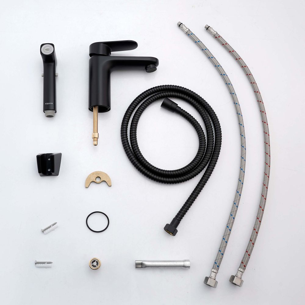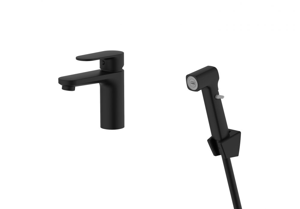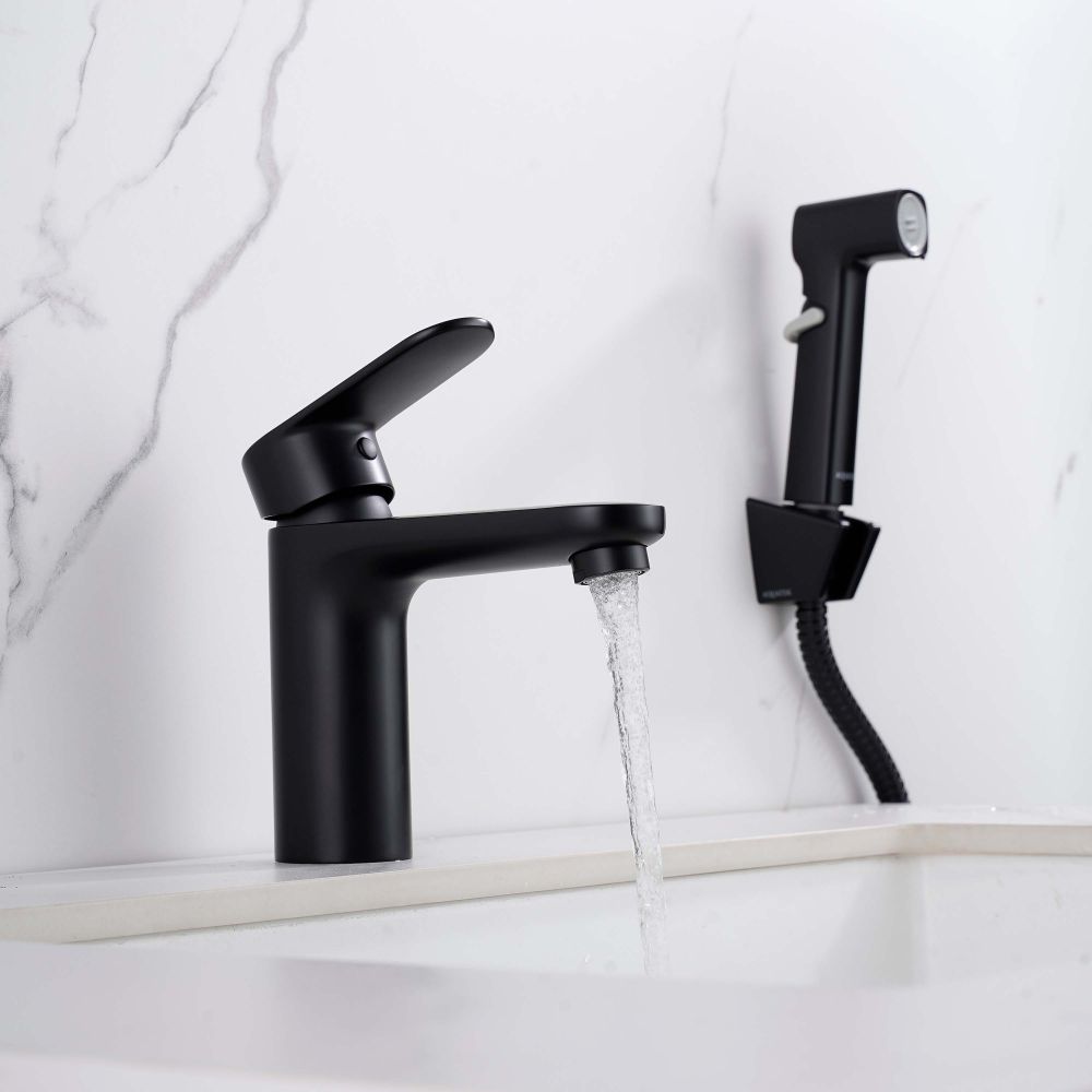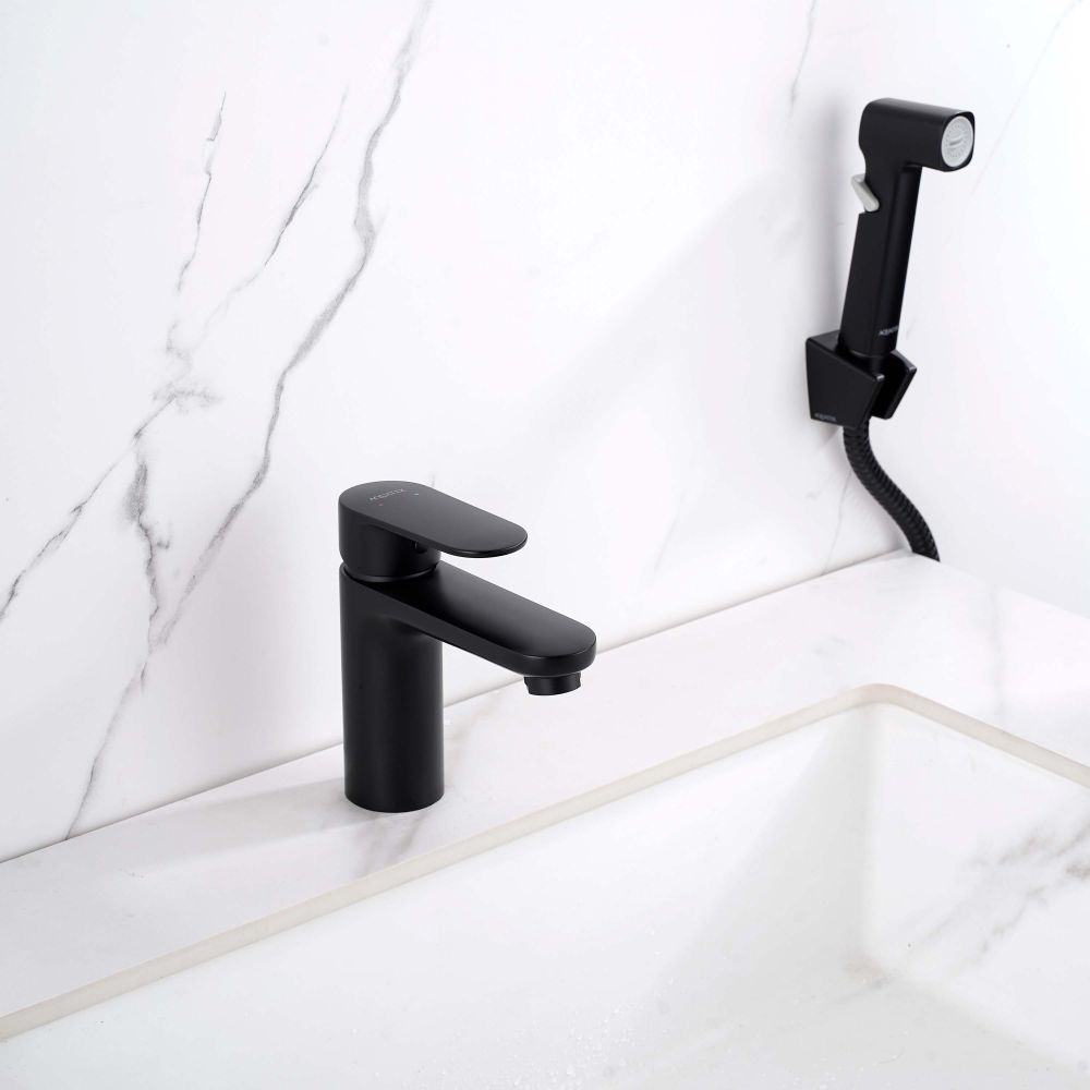 AQ1812MB НИКА смеситель для раковины 90 без донного клапана с гигиеническим ручным душем, матовый черный