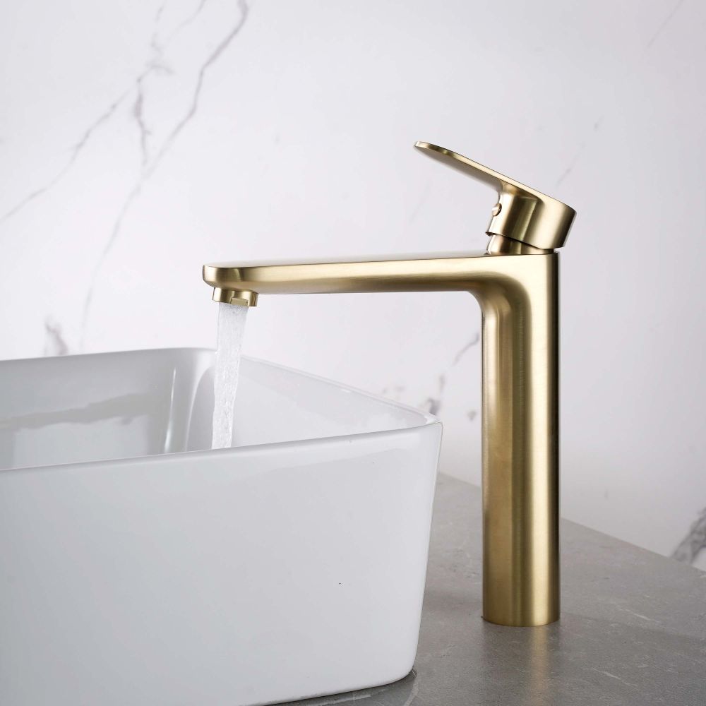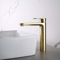 AQ1804BG НИКА смеситель для раковины высокий 190 без донного клапана, шлиф.золото