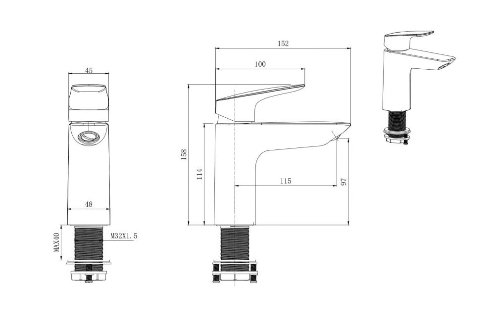 AQ1010BGM ВЕГА смеситель для раковины 97 без донного клапана, оружейная сталь