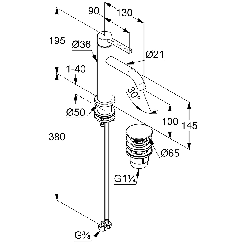 Смеситель для раковины Kludi Nova Fonte Pura 202883915. Характеристики: Цвет: черный матовый. Материал: латунь. Управление: однорычажное. Механизм: керамический картридж. Излив: фиксированный. Аэратор s-pointer eco Cache M 18.5 x 1. Расход воды: 4.5 л/мин при давлении 3 бара. Донный клапан: G 1 1/4 push-open. Тип подводки: гибкая. Стандарт подводки: G 3/8. Отверстия для монтажа: 1. Монтаж: на раковину. В комплекте поставки: Смеситель для раковины. Донный клапан. Гибкая подводка. Комплект креплений.