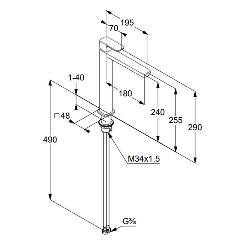 Смеситель для раковины-чаши KLUDI RENON керамический картридж, высокий излив, однорычажный, черный матовый (422983975)