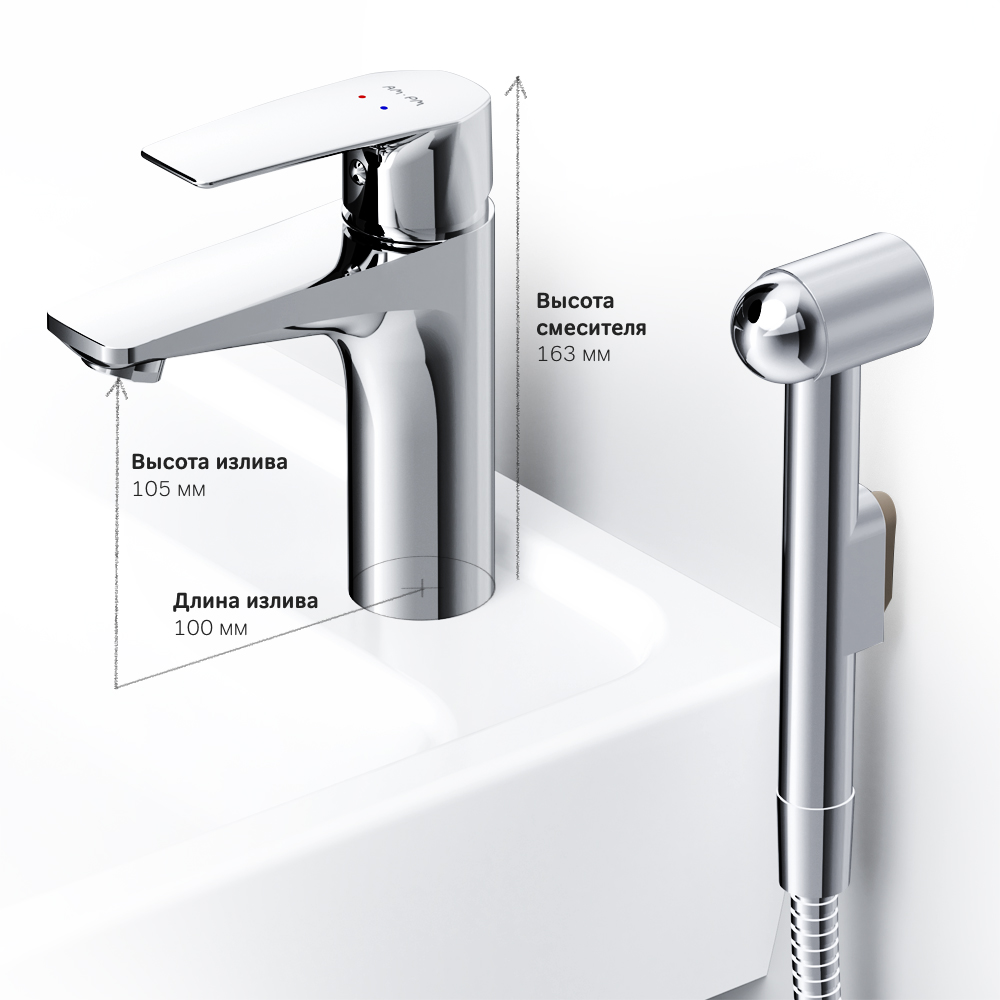 Смеситель для раковины с гигиеническим душем AM.PM Gem F90A03000