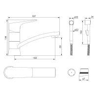 770230001 Jupiter, смеситель с поворотным изливом и гиг. душем, хром