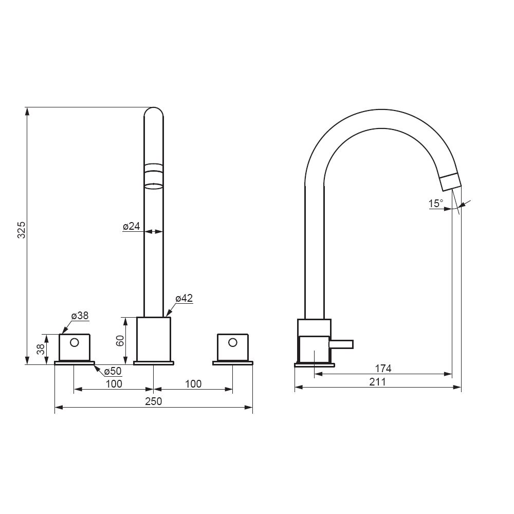Смеситель для раковины, встраиваемый в столешницу трёхсекционный Damixa Scandinavian Pure Хром, 360200000