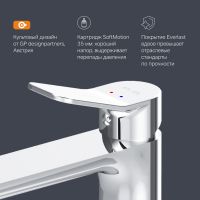 Смесители X-Joy – по-настоящему дизайнерские продукты в своем ценовом сегменте. Разработанные дизайн-агентством GP designpartners из Австрии в 2019 году смесители были удостоены престижной премии Red Dot Design Awards знака качества известного всему миру. Смеситель X-Joy оборудован специально спроектированным для AM.PM керамическим картриджем SoftMotion 35 мм который обеспечивает оптимальную регулировку температуры а также позволяет выдерживать любые перепады давления. Покрытие Everlast – вдвое превышает отраслевые стандарты по прочности и износостойкости. Отдельная гарантия на корпус и покрытие – 10 лет в два раза больше чем принято по европейским стандартам. ""