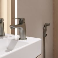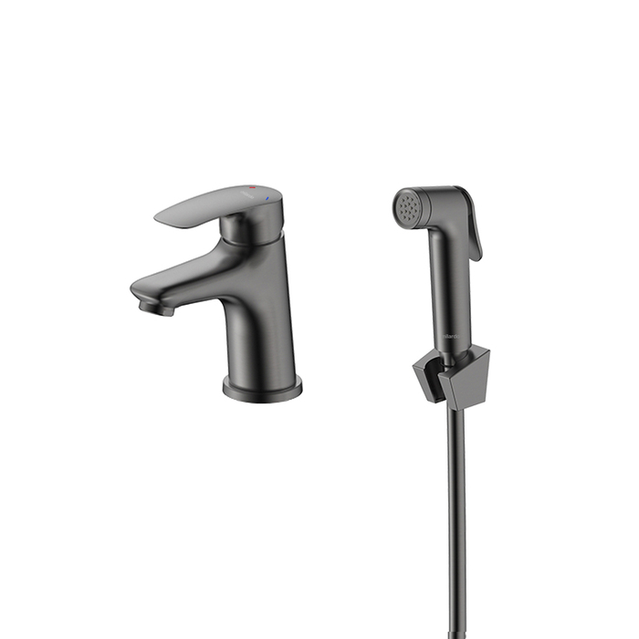 Смеситель для умывальника с гигиеническим душем, графит, Rora, Milardo, RORGM01M08