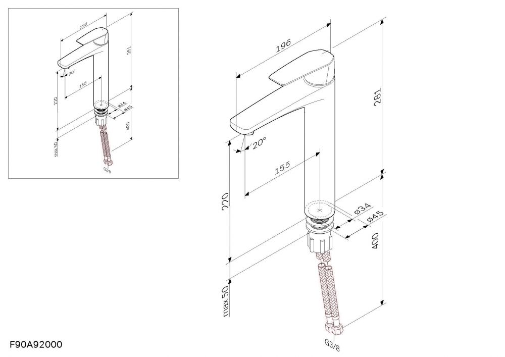 Смеситель для умывальника высокий AM.PM Gem F90A92000
