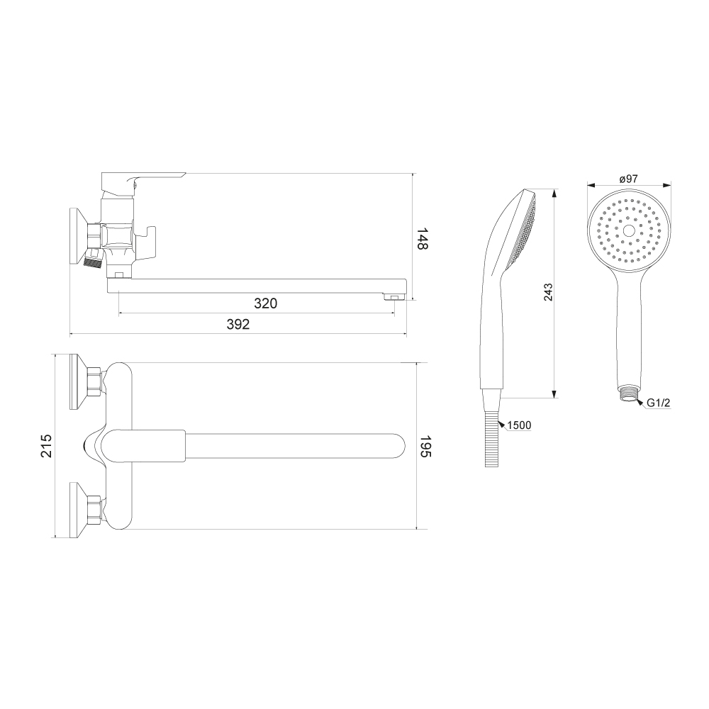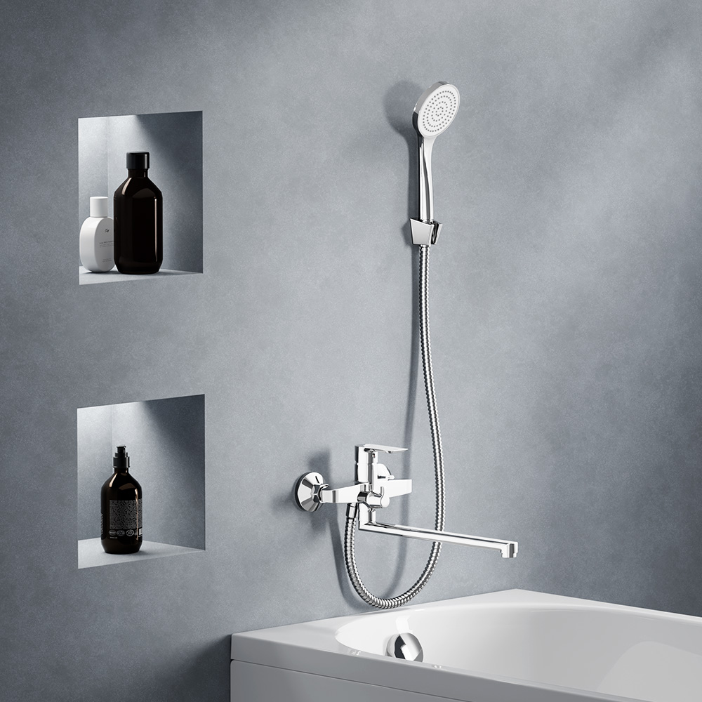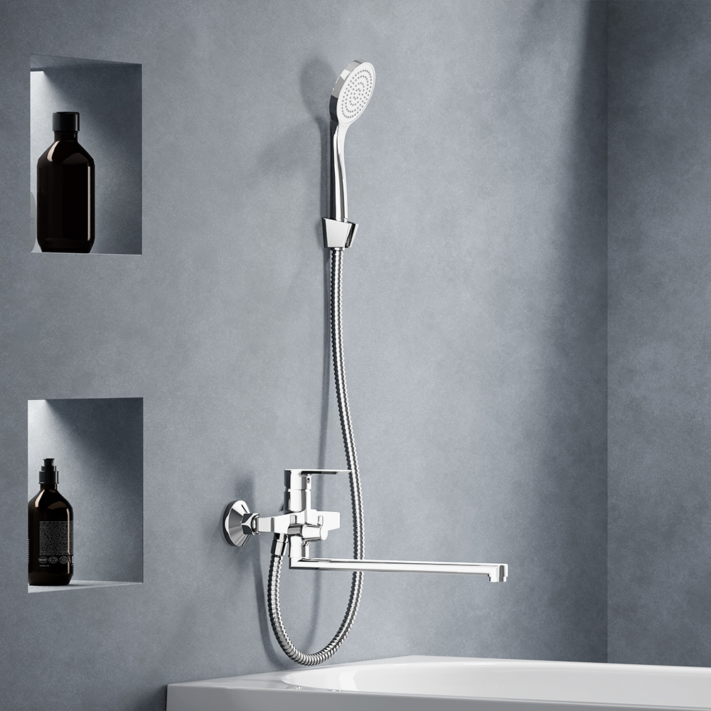 Смеситель для ванной и душа с длинным изливом и душевым набором Damixa Apollo 479500000, хром