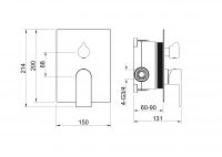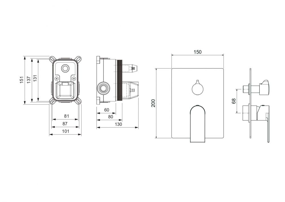 смеситель из латуни с установочной коробкой на 2 потребителя; ручка из цинкового сплава; картридж citec 35 мм, испания; декоративная пластина 3мм из нерж.; дивертор - керамический картридж