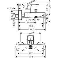 Смеситель для ванны Hansgrohe Rebris E 72450670. Характеристики: Цвет: черный матовый. Материал: латунь. Управление: рычажное. Излив: фиксированный. Механизм: керамический картридж. Стандарт подключения: G 1/2. Отверстия для монтажа: 2. Монтаж: настенный. Вид соединения: S-образные эксцентрики. Межосевое подключение: 150 мм. Тип струи смесителя: обычная струя. Максимальный расход воды при 3 бар: 20,4 л/мин. Расход воды при 3 барах: 20,4 л/мин. Расход воды ручным душем при 3 барах: 15,5 л/мин. Регулируемое ограничение температуры. Дивертер с переключателем вакуумного типа. Со встроенной защитной комбинацией EN1717. С шумопоглотителем. Подходит для проточных водонагревателей. Минимальное рабочее давление 1 бар. Максимальное рабочее давление: 10 бар. В комплекте поставки: Смеситель.