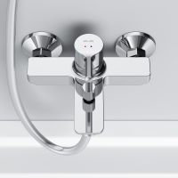 Устремленная вверх ручка-стик смесителя X-Joy придает стильный внешний вид всему продукту и дарит непревзойденную легкость управления.