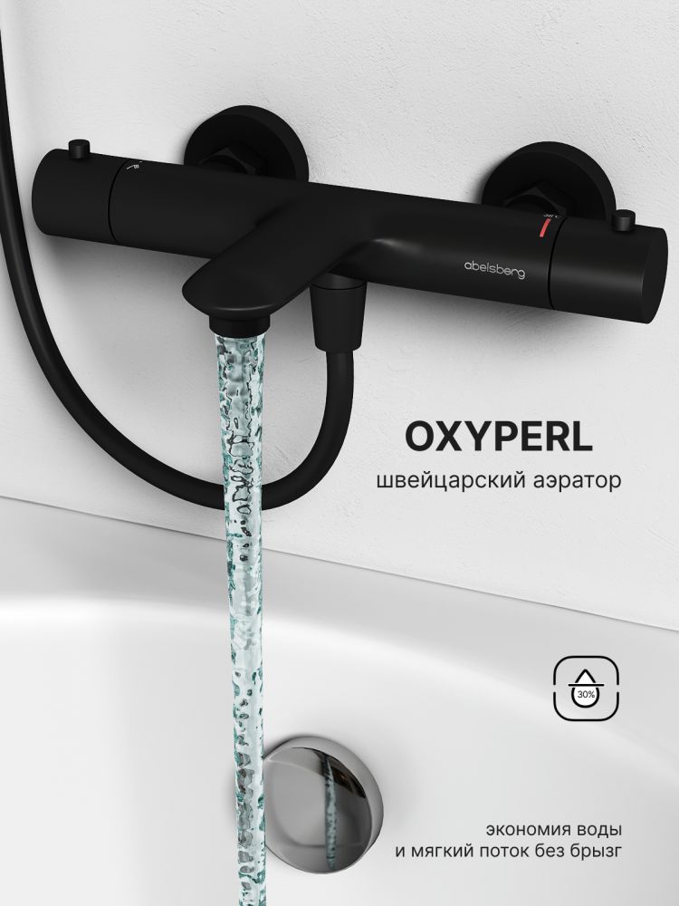 Смеситель для ванны и душа Abelsberg Perfecta INF61101MB с термостатом, вулканический черный