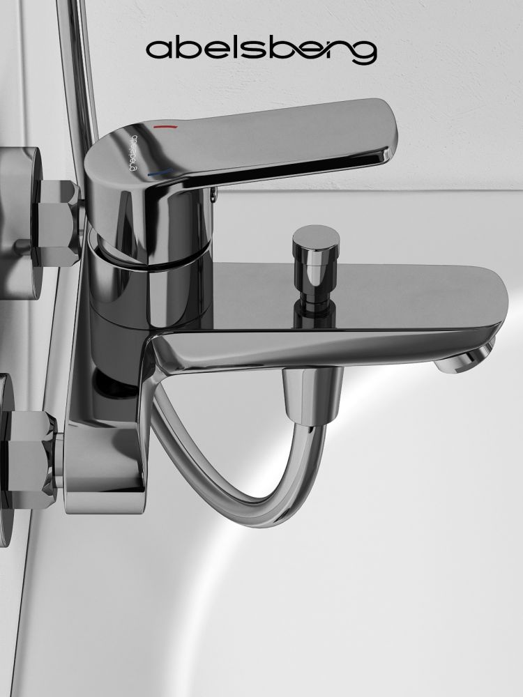 Смеситель для ванны и душа Abelsberg UNF25747CH Lineara, глянцевый хром