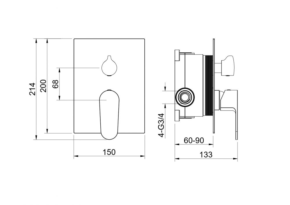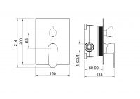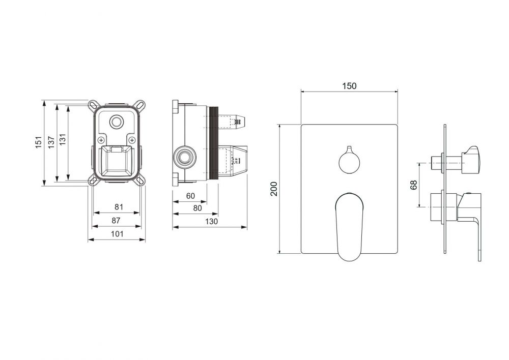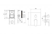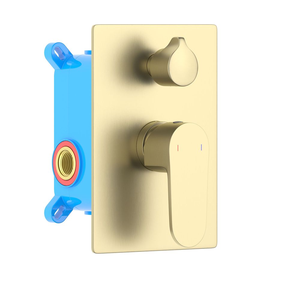 смеситель из латуни с установочной коробкой на 2 потребителя; ручка из цинкового сплава; картридж citec 35 мм, испания; декоративная пластина 3мм из нерж.; дивертор - керамический картридж