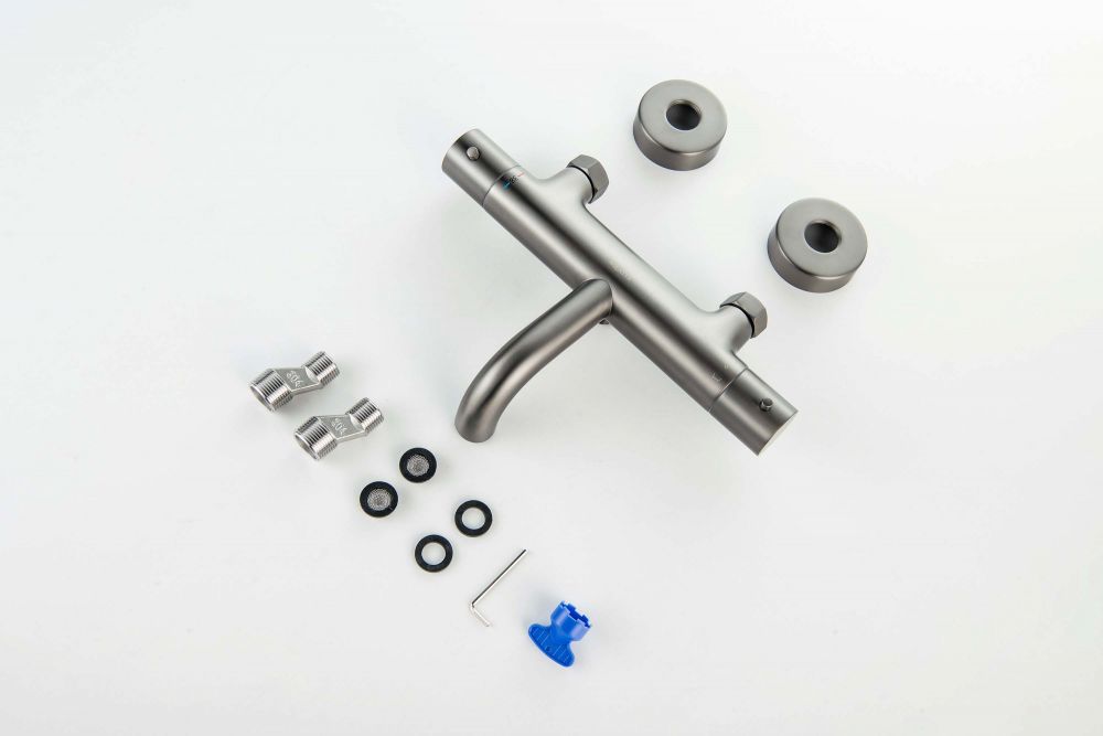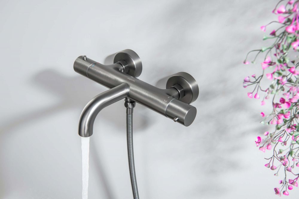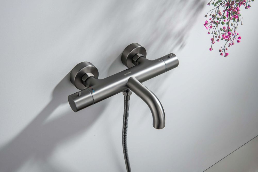 AQ1343BGM ЕВРОПА термостатический смеситель для ванны, оружейная сталь