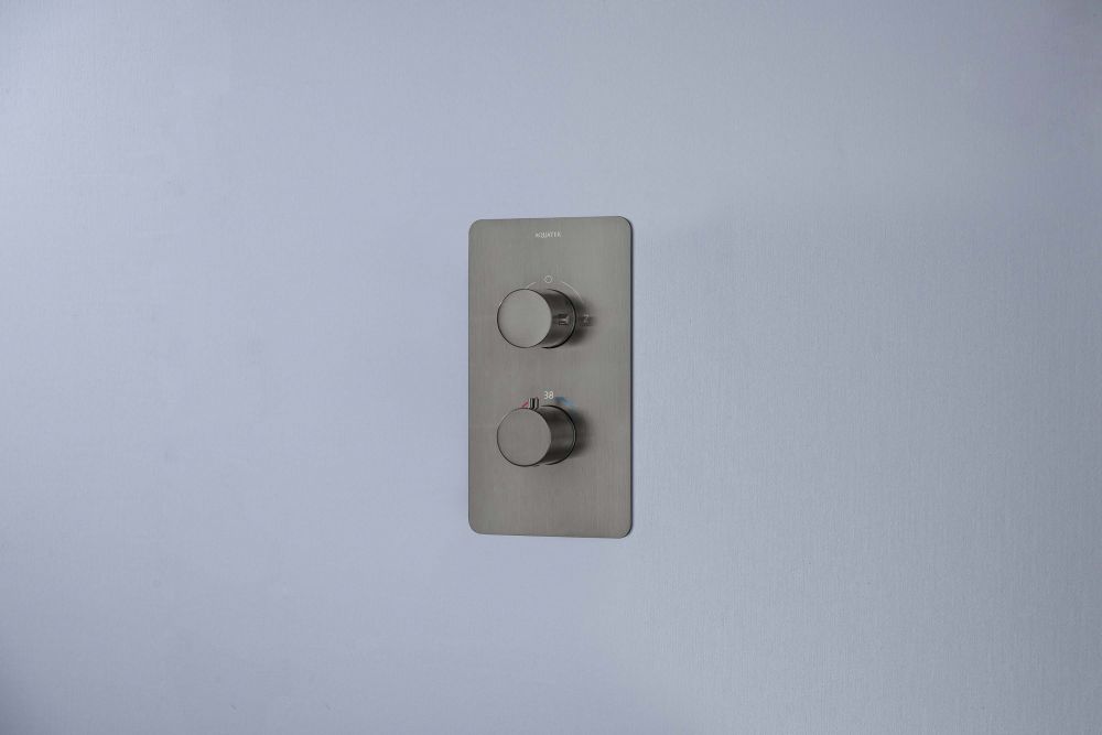 AQ1392BGM ЕВРОПА термостатический смеситель для ванны 2 режима (внешняя и скрытая часть), оружейная сталь