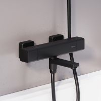 Смеситель для ванны и душа Gala обладает мягкими геометричными формамикоторые идеально впишутся в современную ванную комнату. Максимальная безопасность: термостатический картридж 35мм обеспечивает точную настройку температуры и напора воды. Специальная кнопка-предохранитель не позволяет случайно повысить температуру воды. Выставляйте комфортные для вас параметры легким поворотом правой ручки смесителя. Переключайте потоки воды между лейкой и изливом плавным поворотом излива на 90 градусов. Уникальная разработка Damixaаэратор EcoSaveнасыщает струю воды воздухомчто позволяет сократить расход практически в два раза. Струя воды насыщается кислородомчто обеспечивает хороший напор даже при низком давлении в системе. Инновационное PVD-покрытие гарантирует чрезвычайную прочность смесителя. Матово-черная поверхность не выцветает с годами и устойчива к механическим повреждениямзагрязнениям и отпечаткам пальцев. Такой смеситель прослужит вам минимум 10 лет. ""