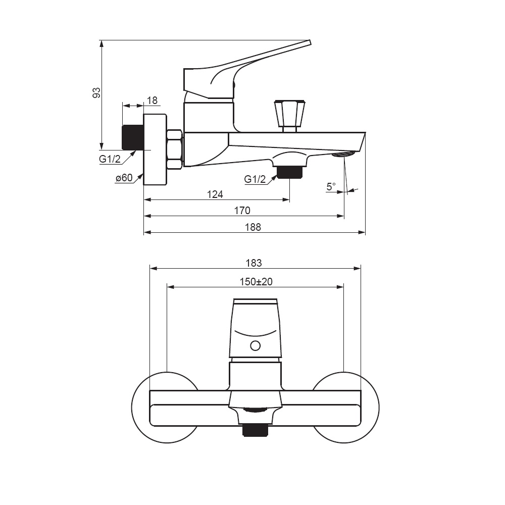 Смеситель для ванны и душа Damixa Merkur, хром 401000000