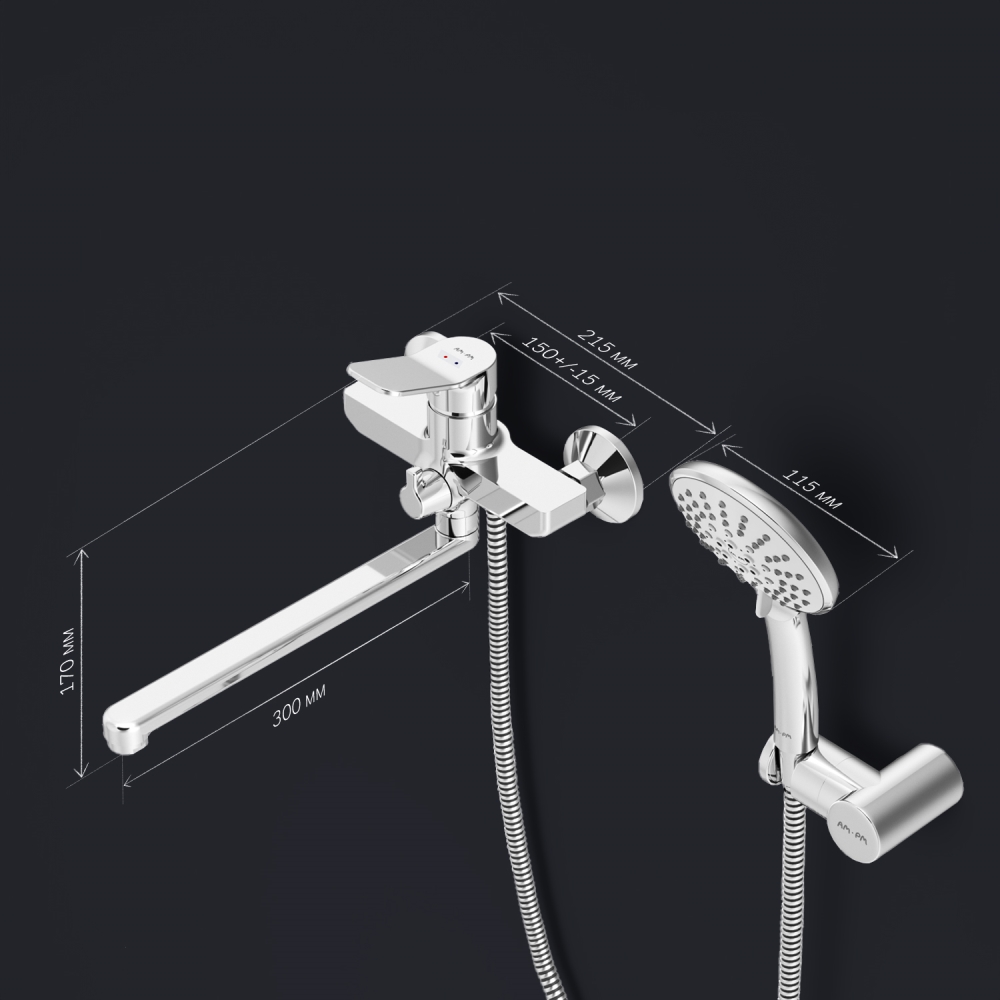 Смеситель для ванны и душа, душевой набор, хром, AM.PM X-Joy F85A95000