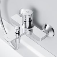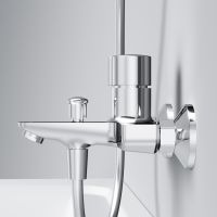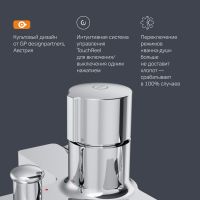 Первая в мире коллекция нажимных смесителей для ванной комнаты была создана в рамках коллекции X-Joy всемирно известным дизайн-бюро GP designpartners Австрия. Интуитивная понятная система управления TouchReel для включения/выключения смесителя одним нажатием. Максимально простое управление температурой воды для тех кто не хочет ничего настраивать. ""