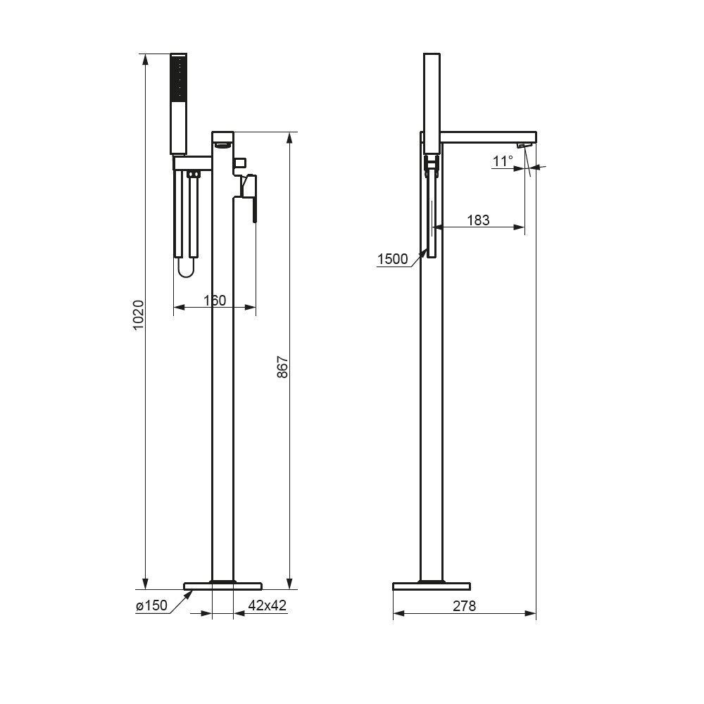 Смеситель для ванны и душа, отдельностоящий Damixa Gala Черный, 535000300