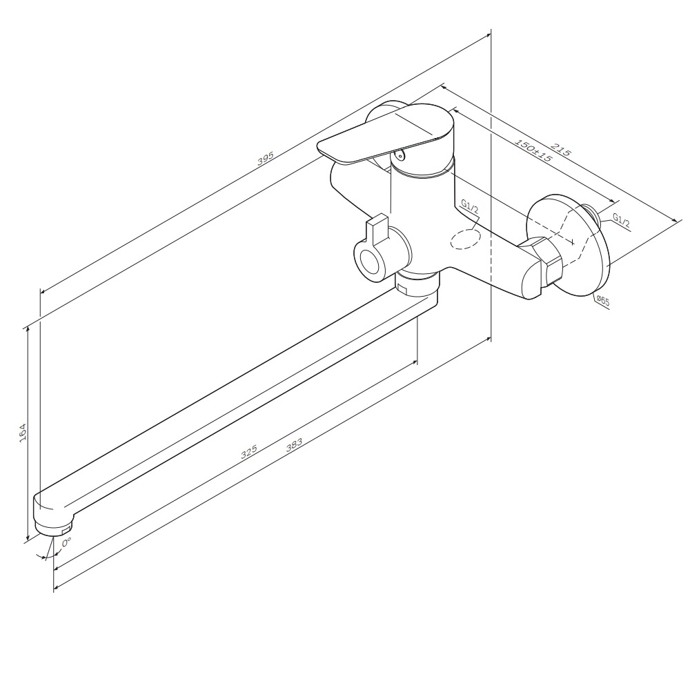 Смеситель для ванны и душа с длинным изливом 325 мм AM.PM Crave F9C90200, хром