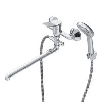 Стильное универсальное решение для ванной комнаты - качественный смеситель для ванны и душа с длинным поворотным изливом с душевым набором. Универсальный длинный излив позволяет использовать смеситель как для ванны так и для рядом стоящей раковины. Функциональный держатель для ручного душа на два положения добавит удобства использования. Душевой шланг длиной 150 см позволит наслаждаться душем даже высокому человеку. Максимум функций за разумную плату в одном изделии! Ультрамодный дизайн ручки придает смесителю дополнительную динамику и дарит непревзойденную легкость управления. Вы почувствуете это с первого прикосновения. Точная инженерия для Вашего комфорта: благодаря обширной зоне движения ручки управлять температурой воды стало еще проще. ""
