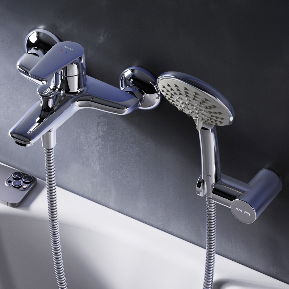 Смеситель для ванны и душа с душевым набором AM.PM Joy F85E15000, хром