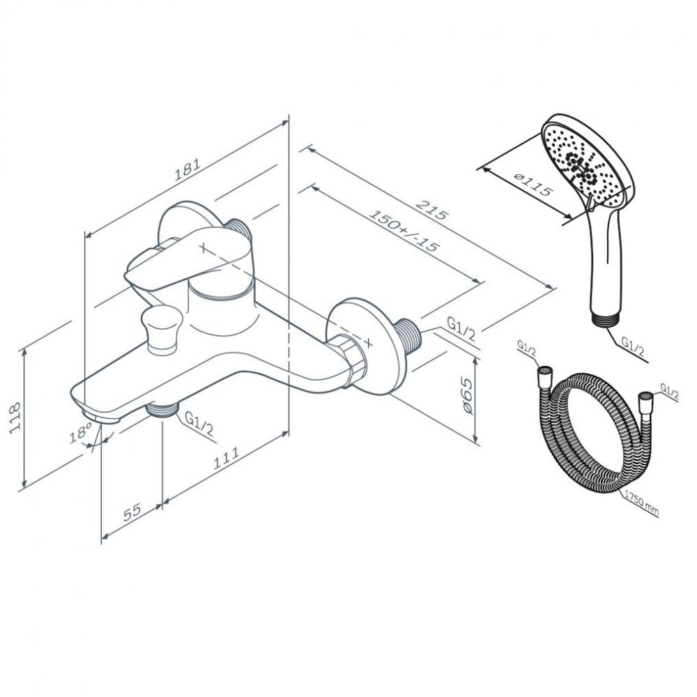 F85E15000_xxx Joy, смеситель для ванны/душа, душевой набор, хром, шт.